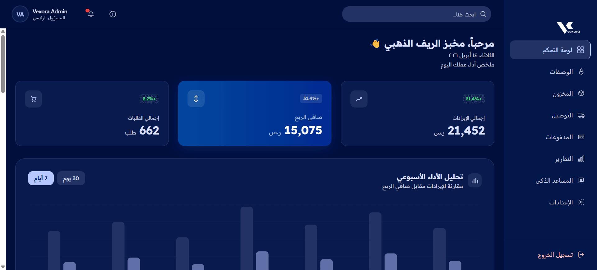 A 7-day product build developed during V-Camp (by Rakeezah). Vexora is a smart operations platform that helps food businesses understand real profitability by connecting cost, pricing, and delivery performance in one system.